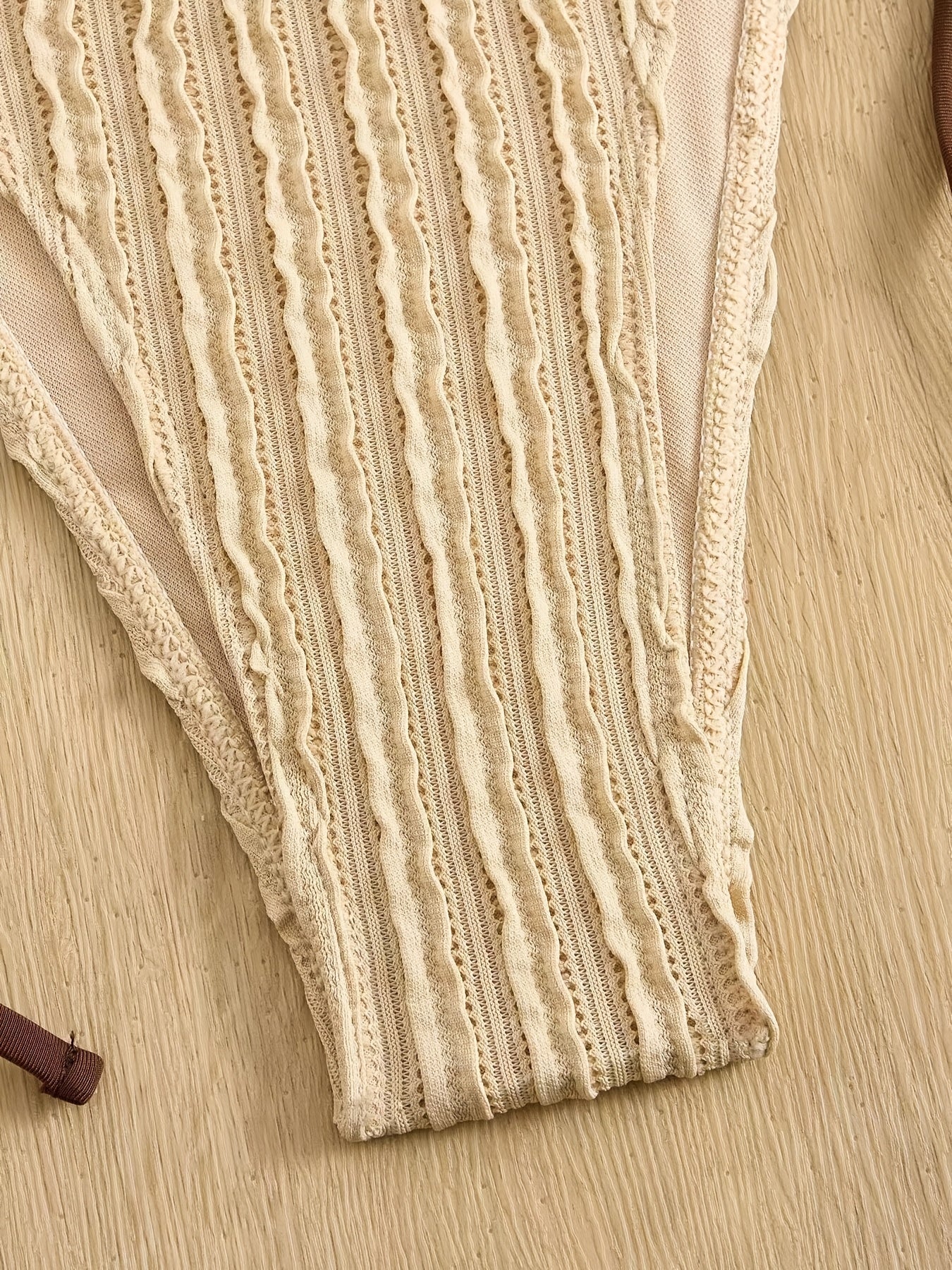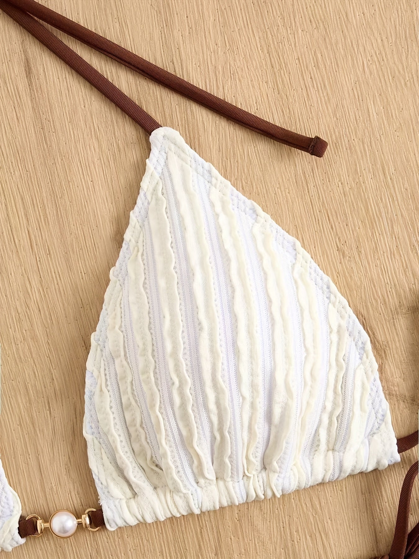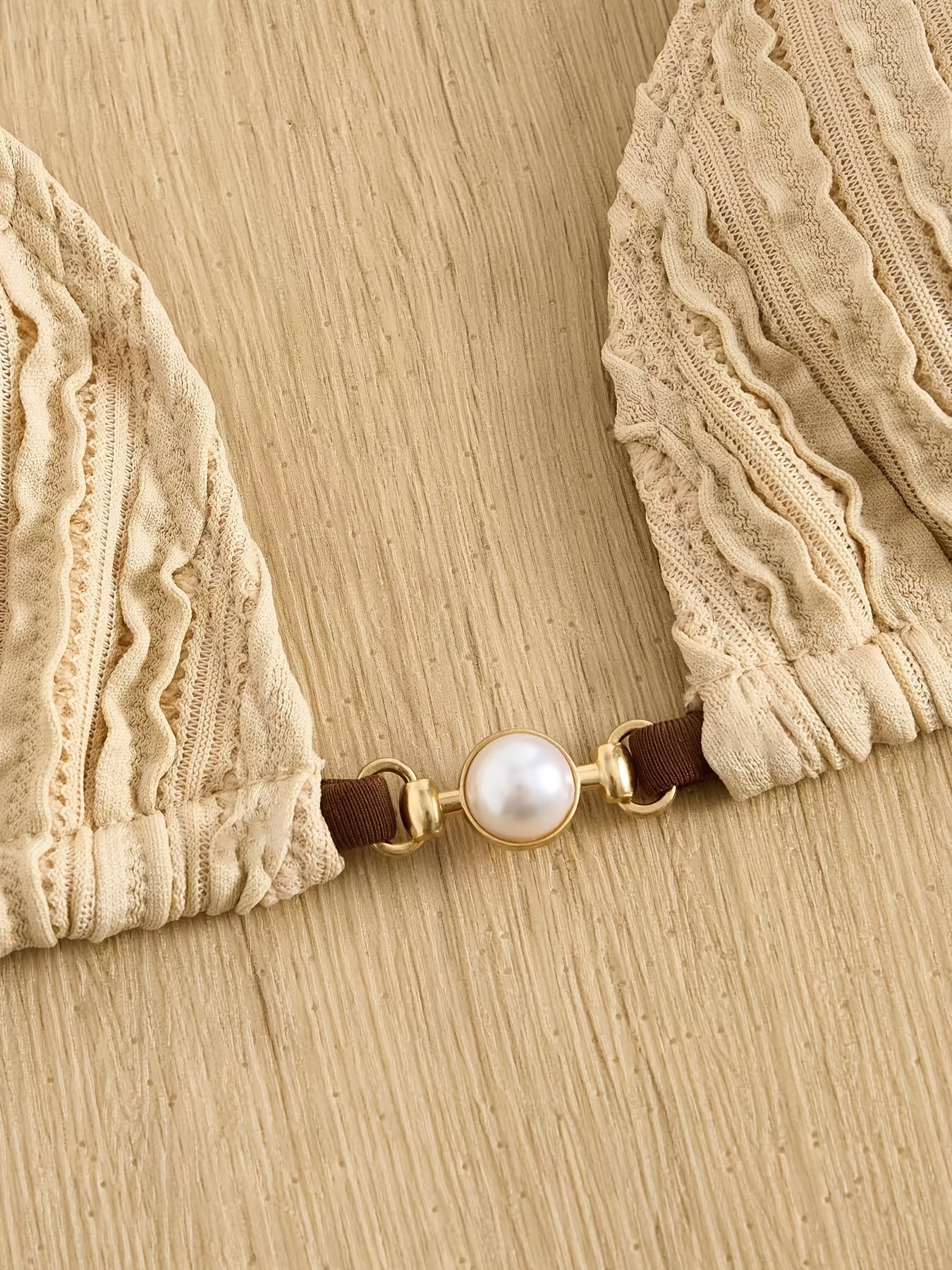 Allure naturelle et charme discret pour ce maillot de bain 2 pièces triangle texturé à nouer perle, parfait pour un été en douceur.