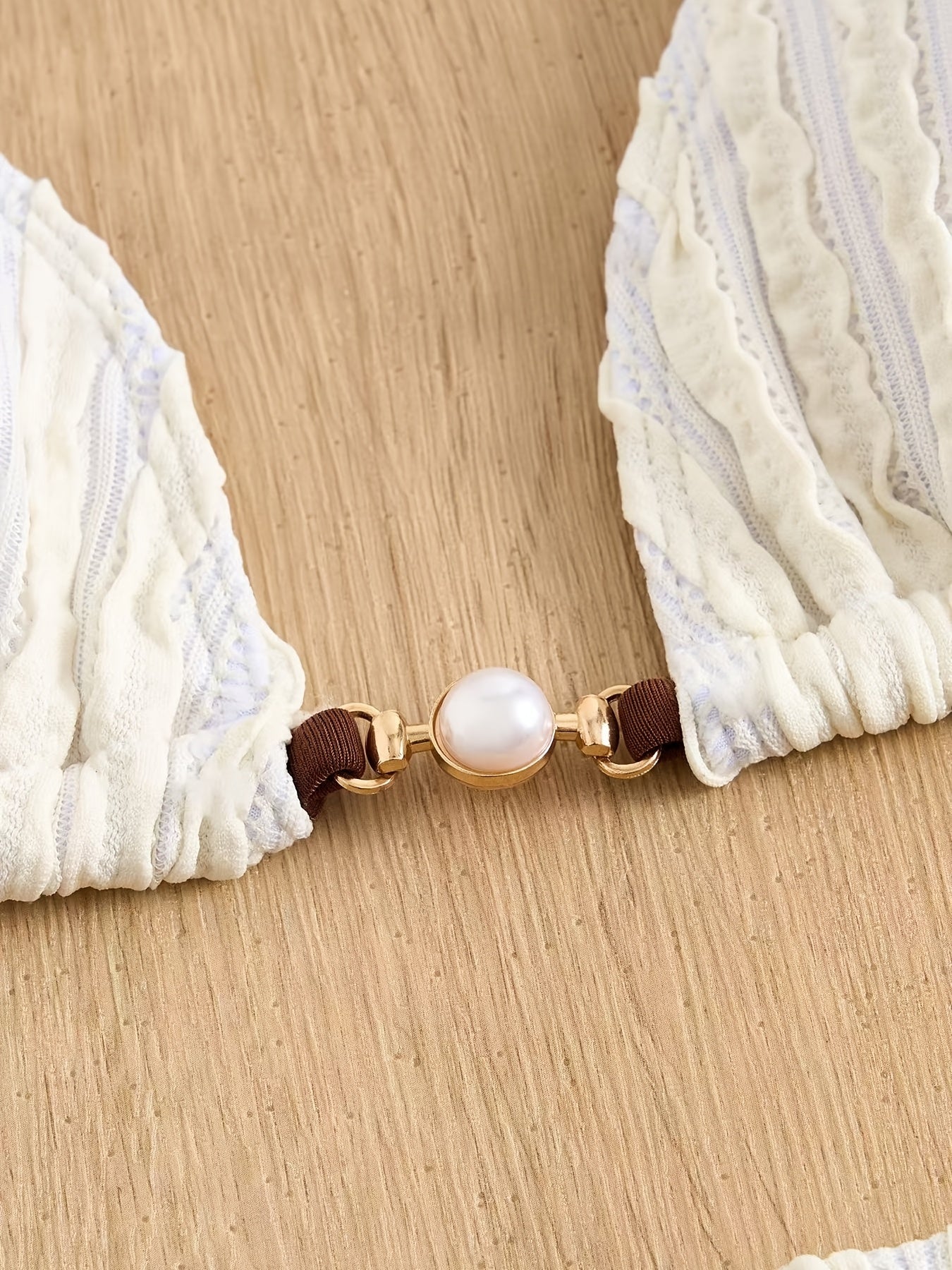 Maillot de bain 2 pièces triangle texturé à nouer perle